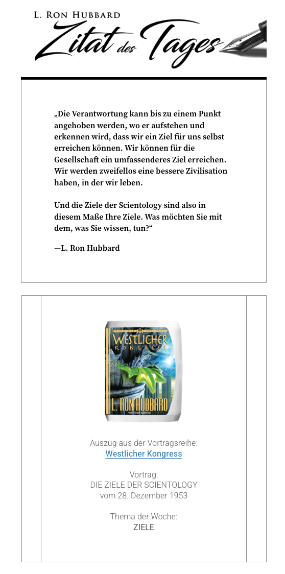 Wir senden regelmäßig E-Mails mit inspirierenden Zitaten aus den Werken von L. Ron Hubbard. Wenn Sie diese erhalten möchten, füllen Sie dieses kurze Formular aus, um sich anzumelden!